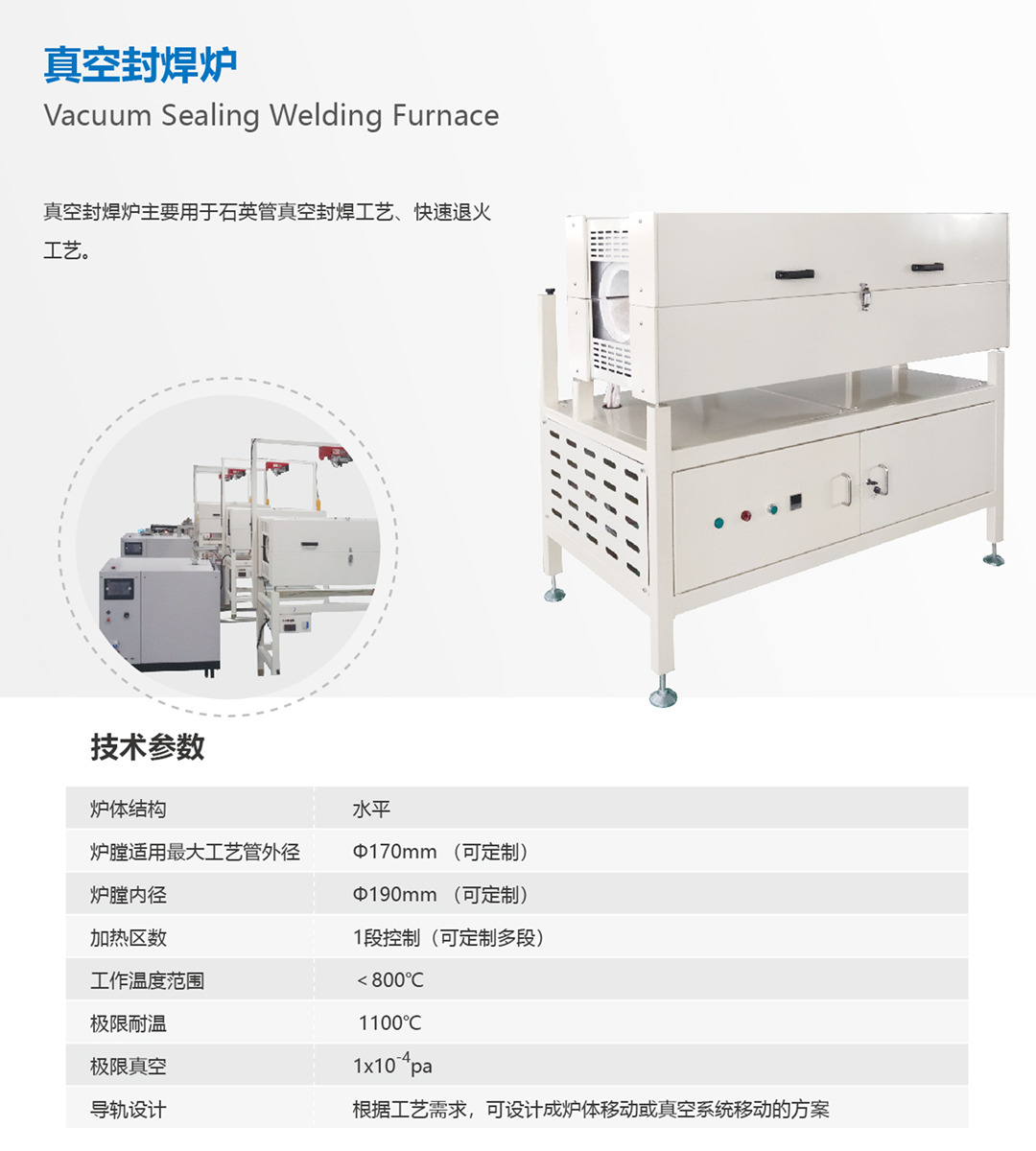 真空封焊爐主要用于石英管真空封焊工藝、快速退火工藝。