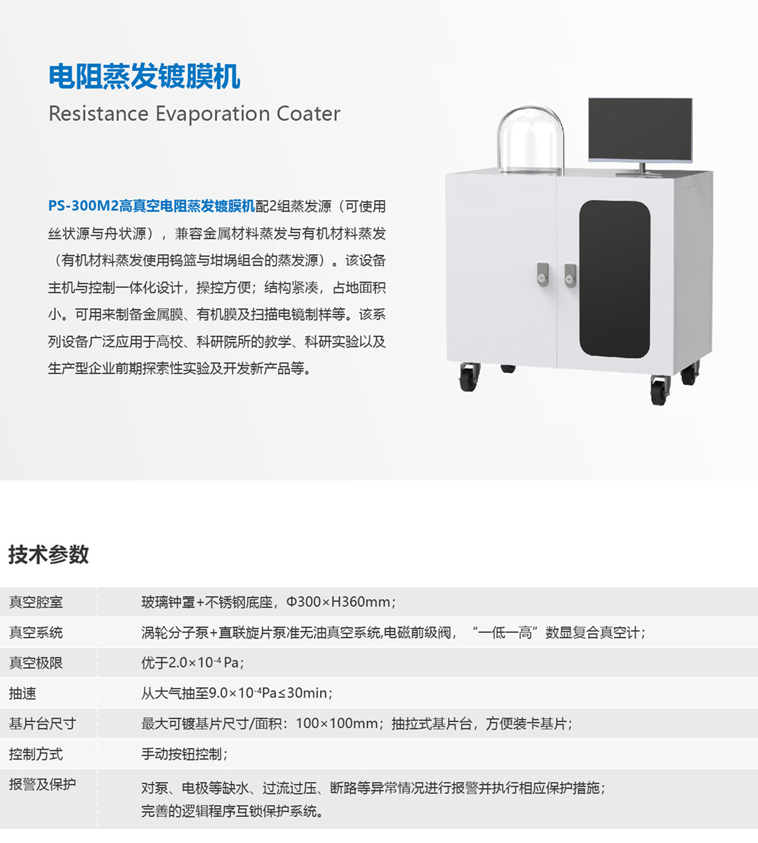 該設備主機與控制一體化設計,操控方便;結構緊湊,占地面積小,可用來制備金屬膜、有機膜及掃描電鏡制樣等。